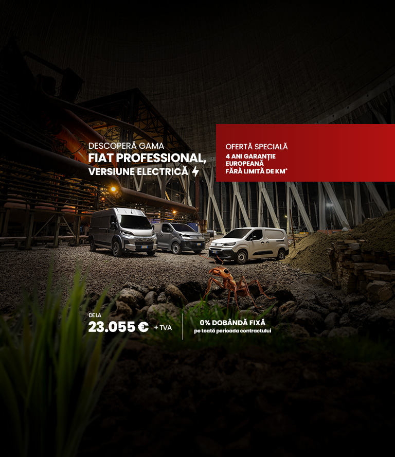 Optimizează-ți activitatea cu FIAT Professional. Oferim o gamă largă de soluții inovatoare, de la produse excepționale la cele mai bune servicii, pentru a te ajuta să te folosești la maximum de flota ta. Tot ce trebuie să faci este să introduci datele în funcție de nevoile tale și îți vom oferi cea mai bună soluție